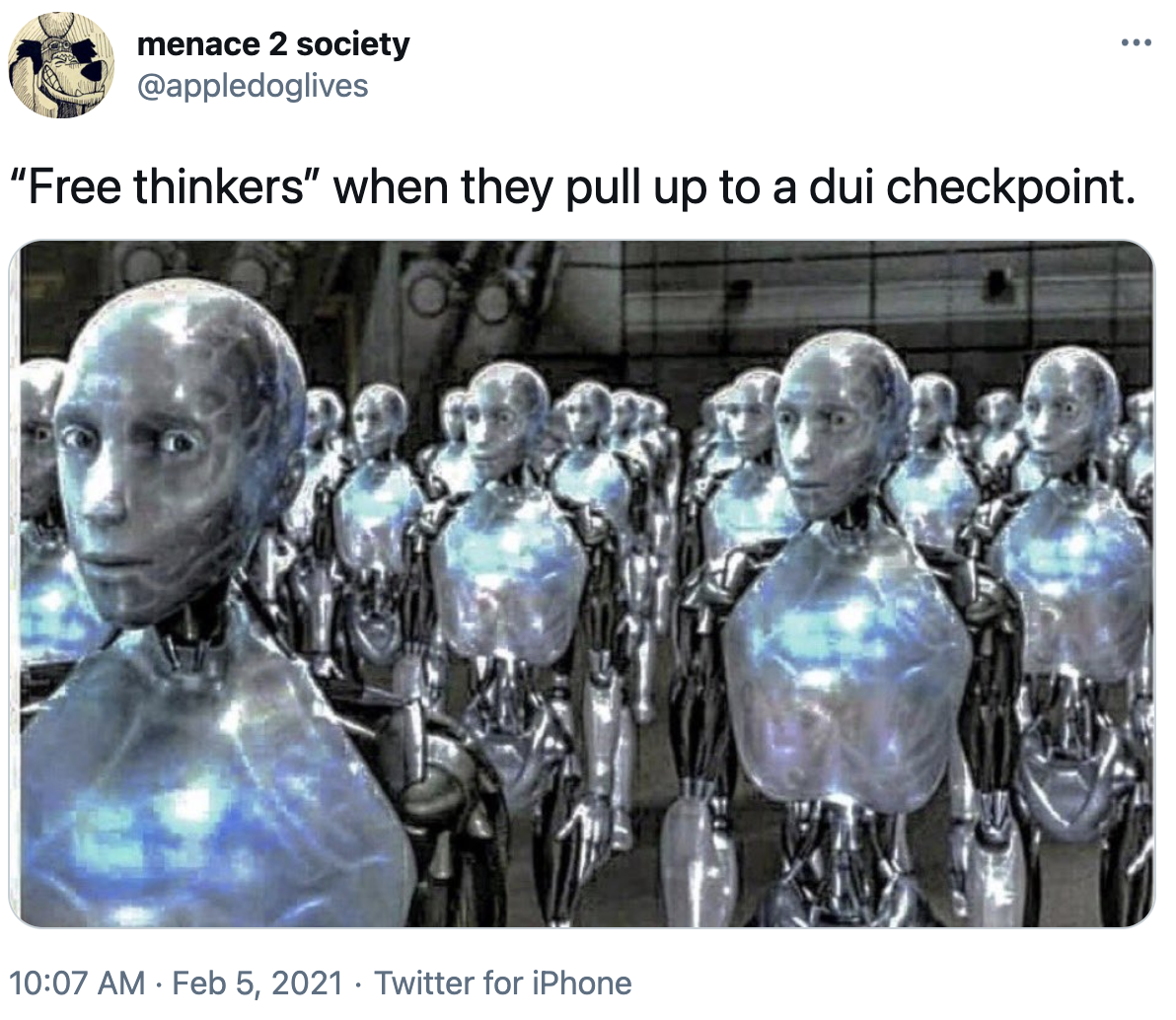 “Free thinkers” when they pull up to a dui checkpoint. Self Ifunny is fun of your life. The perfect free thinkers free thinkers animated gif for your conversation. Your anaconda definitely wants some. We deliver faster than amazon. More posts from the tf2shitposterclub community. The meme features a line of identical. It's a free online image maker that lets you add custom resizable text, images, and much more to templates. Images, gifs and videos featured seven times a day. Posted by 7 days ago. Discover and share the best gifs on tenor.
